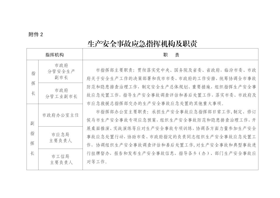侯馬市生產(chǎn)安全事故應(yīng)急救援指揮體系由市生產(chǎn)安全事故應(yīng)急指揮部及其辦公室組成。