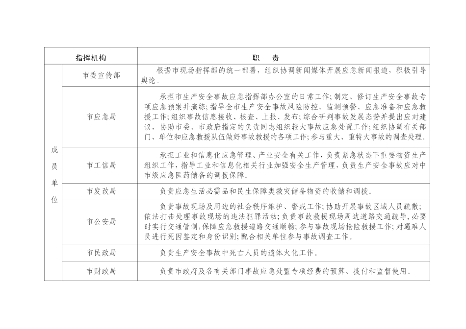 成員單位:市公安局、市發(fā)改局等市直相關(guān)部門,事發(fā)地鄉(xiāng)(辦)及其相關(guān)部門。