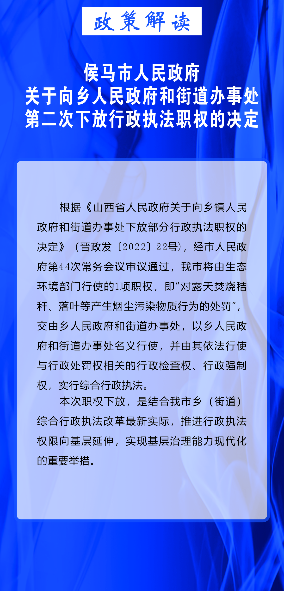 侯馬市人民政府 關于向鄉(xiāng)人民政府和街道辦事處 第二次下放行政執(zhí)法職權的決定