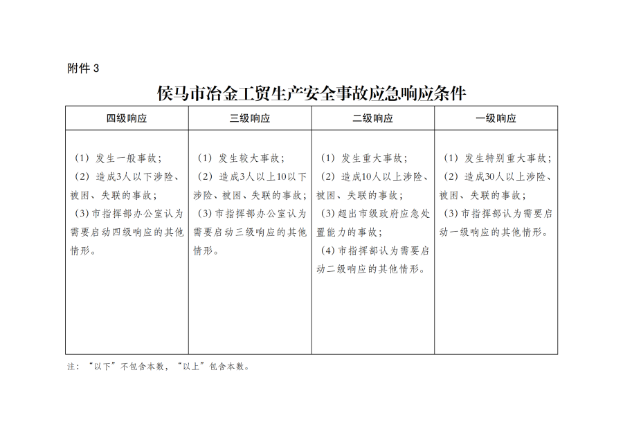3.侯馬市冶金工貿(mào)生產(chǎn)安全事故應(yīng)急響應(yīng)條件
