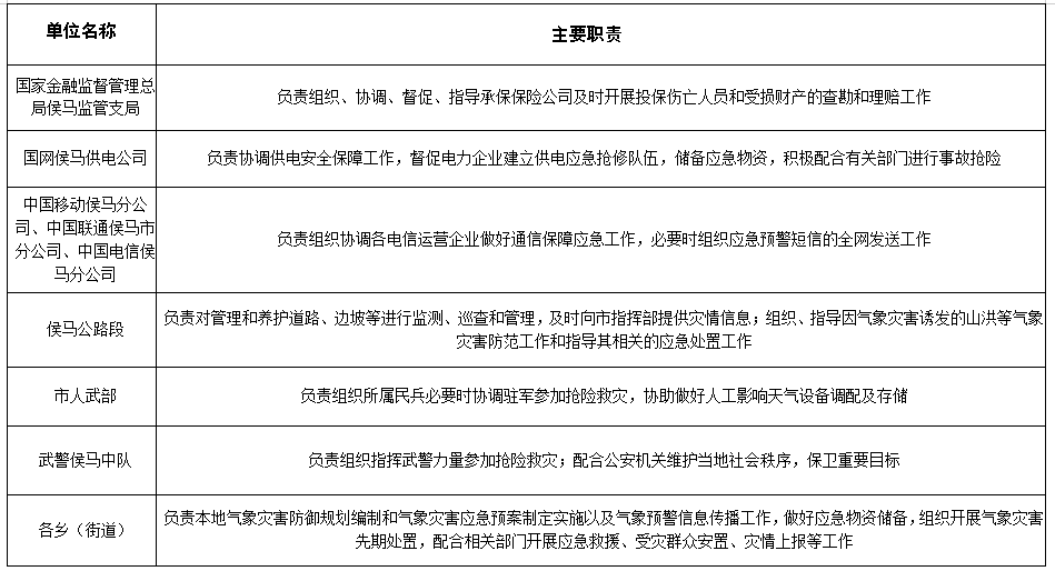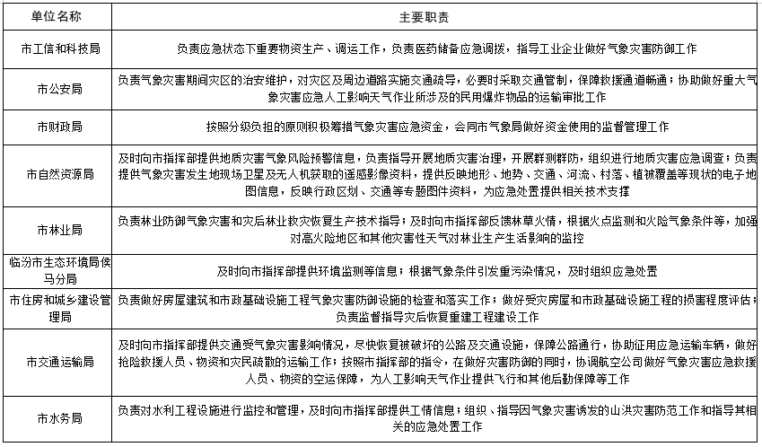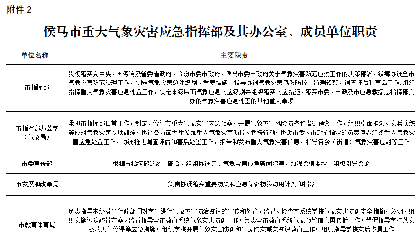 ??????2.侯馬市重大氣象災(zāi)害應(yīng)急指揮部及其辦公室、成員單位職責(zé)